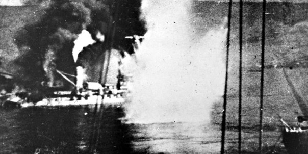 Спустя пять минут пламя достигло пороховых погребов. Взрыв был чудовищным. Обломки линкора скрылись под водой. Спаслось лишь полторы сотни человек.