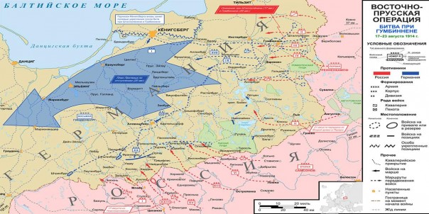 17 августа 1-я русская армия Северо-Западного фронта и 20 августа 2-я армия перешли границу Восточной Пруссии. Планировалось отрезать немцев на правом берегу Вислы и уничтожить их 8-ю армию. А после занять всю Восточную Пруссию. Далее можно было переходить к наступлению в сторону Берлина с позненского направления.