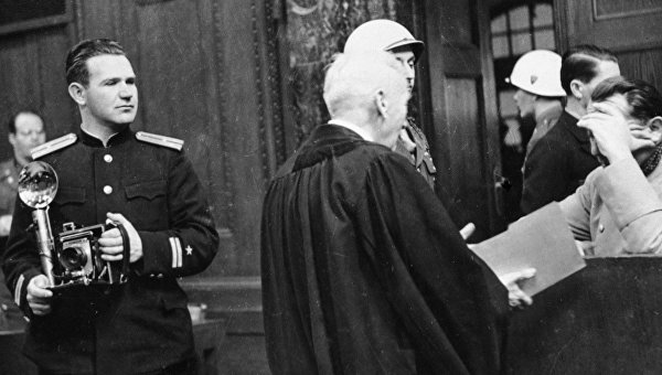 Когда нужно было отправлять фотографа в Потсдам и Нюрнберг, выбор пал на Евгения Халдея. Три снимка нашего земляка были представлены в качестве обвинительных документов на Нюрнбергском процессе: фотографии разрушенного Севастополя, жертв во дворе ростовской тюрьмы, труб сожжённых домов Мурманска. Еврейский мальчик, потерявший в нежном возрасте мать от рук черносотенцев, а во время войны отца и сестёр от рук гестаповцев, снимал суд над нацистскими преступниками. Герман Геринг увидел фотографа в советской форме и закричал, он кричал до тех пор, пока его не ударил американский лейтенант. Впоследствии Евгений Халдей попал в один кадр с бывшим вторым человеком фашистской Германии. Красавец донбассовец стоит с фотоаппаратом и смотрит в сторону Геринга, Геринг прикрывает лицо рукой от другого фотографа.
