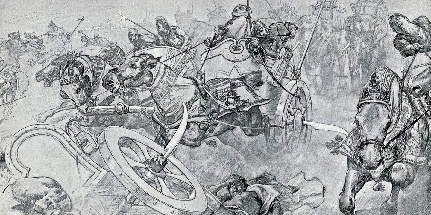 Некоторое время супероружием древности были боевые колесницы. И, хотя их никак нельзя считать полноценными кавалерийскими отрядами — в боевых повозках сражались лучники и копейщики, — именно колесницы впервые в истории стали применять шоковый удар по неприятелю.