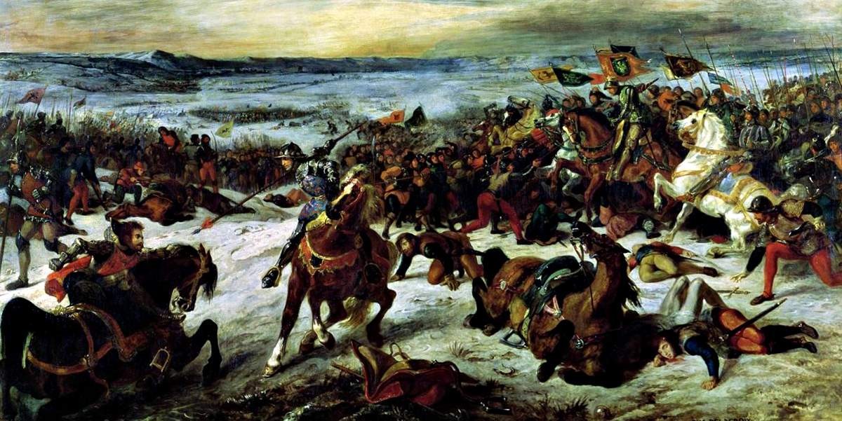 Время пришло в 1477 году. В сражении при Нанси плотные ряды вооружённой пиками и алебардами швейцарской пехоты, с защищёнными бронёй первые рядами, разбили бургундцев — лучшую армию Европы под командованием выдающего полководца герцога Карла Смелого.