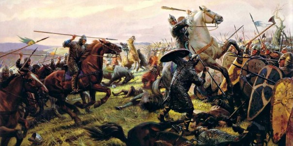 Справка. Кавалерийский шок — атака больших масс конницы на максимально быстром аллюре с применением холодного оружия. Иной раз дело даже не доходило до прямого столкновения. Более слабый или хуже организованный неприятель бежал, лишь только закованные в доспехи воины на рослых конях приближались достаточно близко. Однако стойким бойцам приходилось выдерживать удар тяжёлых коней и их всадников с разгона — эффект от такого удара для пехотинца был сравним с наездом некрупного автомобиля.