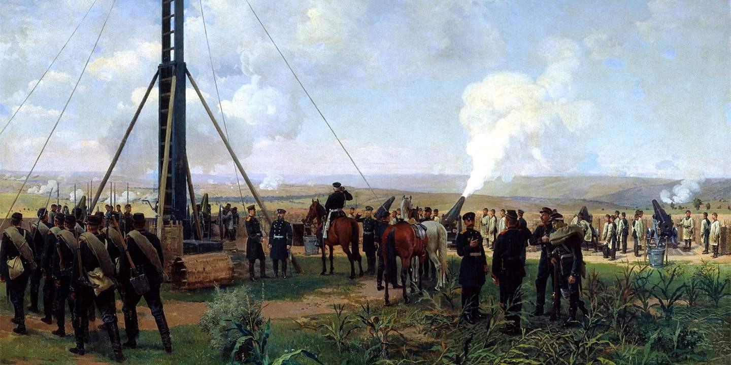 В июле русские форсировали Дунай и вскоре подошли к Балканскому хребту. Началась осада Плевны — ключевого элемента османской оборонительной позиции. В декабре Плевна пала, и русская армия устремилась на равнины Болгарии. Авангардом командовал прославленный генерал Михаил Скобелев.