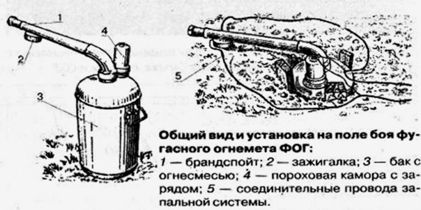ФОГи — фугасные огнемёты — были грозным оружием Красной армии. Баллоны, начинённые горючим веществом, могли выбрасывать огненную струю на десятки метров. Залп ФОГов был страшен для противника: пламя выжигало под корень пехоту и было опасно для бронетехники.