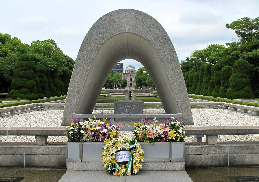 Памятник жертвам Хиросимы – серый бетонный шатер, раскинутый среди зелени парка. Внутри памятника – известковая плита, под ней – ларец с именами погибших. Каждый год к этому списку добавляется примерно 100 новых имен. На братской могиле начертаны слова: "Спите спокойно, ошибка не повторится". Недалеко от памятника – Мемориальный музей мира.