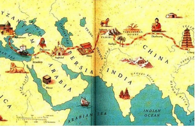 Великий шелковый путь, связывающий Китай и города Центральной Азии со странами Средиземноморья, в течение многих веков играл главную роль в процессах товарного и культурного обмена между этими регионами. Зародившись во II веке до нашей эры как торговый путь между Китаем и городами Ферганской долины, позднее он приобрел статус важнейшей транспортной артерии между Востоком и Западом и просуществовал до Средневековья.