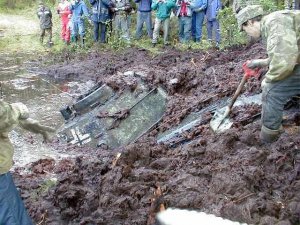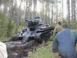 Бульдозер Komatsu D375A-2 вытащил брошенный танк из его гробницы в болоте возле Йыхви (Johvi), в Эстонии. Созданный в Советском союзе, танк Т34/76A покоился на дне озера 56 лет. Технические характеристики: вес - 27 тонн, максимальная скорость - 53 км/ч.
