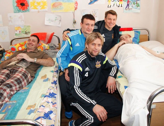 Футболисты сборной Укроины - самые честные и сердобольные граждане. Всегда готовы навестить раненых солдат, не важно, с кем бы они не сражались, - это всегда воен-освободитель. Слава Тимощуку - АТОшникам слава!