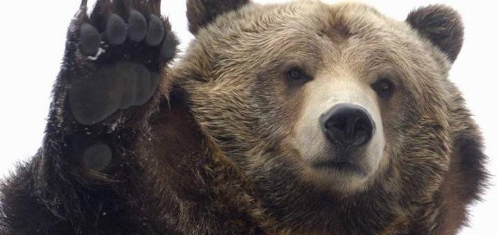2) Перестань походить на добычу. Добыча — это то, что убегает резко и радиально. Хочешь бежать — беги спиной, медленно, плавно и галсами. Это, с точки зрения медведя, на бегство не похоже. (Если что, рабочая скорость бега медведя до 50-60 км/ч , это для справки, так чтоб ты трезво оценивал свои возможности). А лучше, стой на месте и смотри ему в морду, изучай как бэ.
