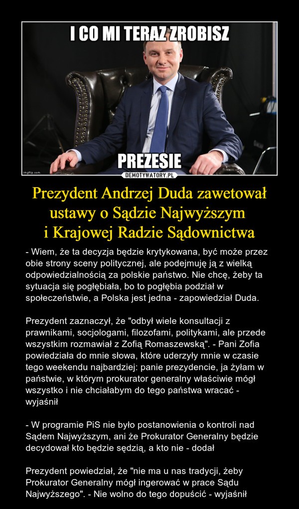 Президент Польши Дуда ветировал законы о Верховном суде и Государственном совете судопроизводства.