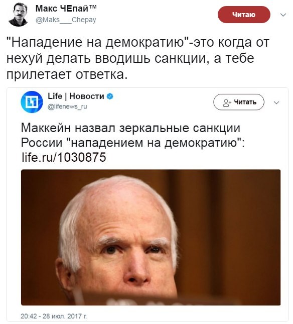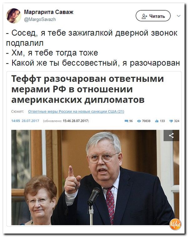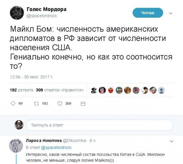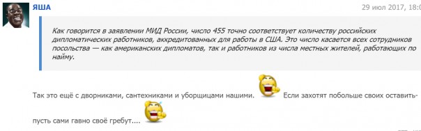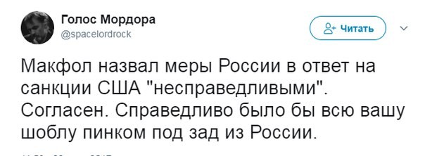Политик также не уточнил, чего США ожидают от России, высылая «сигнал» - подданичества, согласия на действия США в любой точке мира, бесчестия или отказа от подъёма государства после развала Советского Союза?