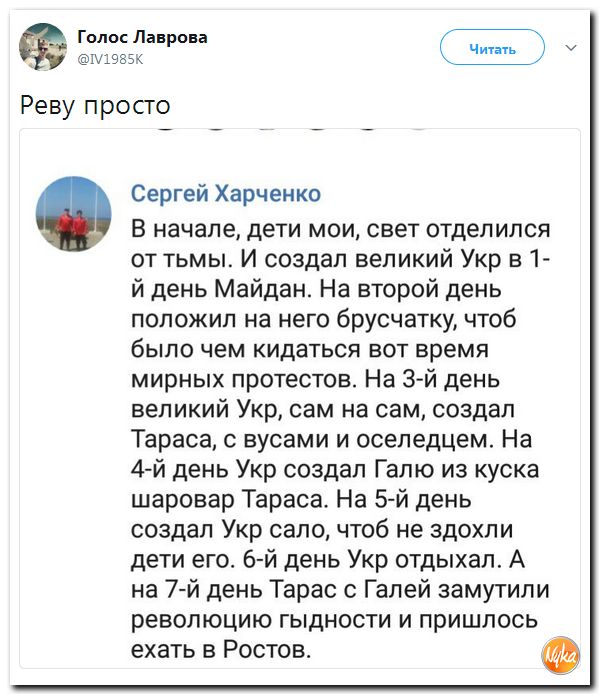 Ах, да, еще немного про Украину. Анекдоты анекдотами, а там вся жизнь как один большой анекдот... черноватый, правда.