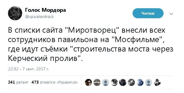 3. В списки сайта «Миротворец» внесли всех сотрудников павильона на «Мосфильме», где идут съемки «строительства моста через Керченский пролив».