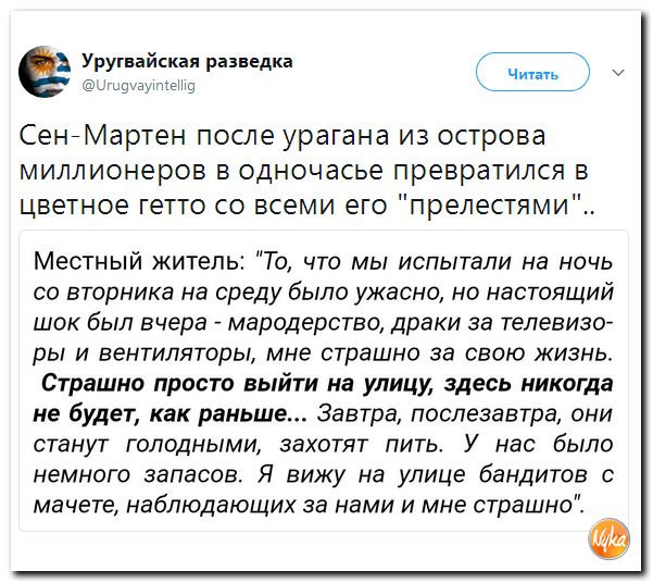 3. А почему в самой цивилизованной и передовой стране мира, после каждого урагана, обязательно начинается массовое мародерство и бандитизм?
