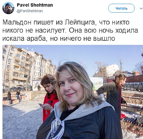 Только представьте, что пережили арабы и насильники. Им всю ночь пришлось скрываться, трясясь от страха, чтобы она их не нашла! Ну, никакой толерантности у некоторых!