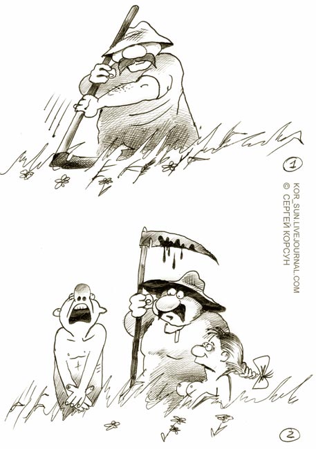 - Был я у любовницы, звонок в дверь, я в панику. Муж. Она ему мусорное ведро в дверь подала, пока он ходил, я оделся и ушел. Прихожу домой, звоню, а жена мне ведро протягивает. Я все понял, ворвался в квартиру, все перерыл, а никого не нашел. Сел на диван, смеялся, смеялся, от смеха и умер.