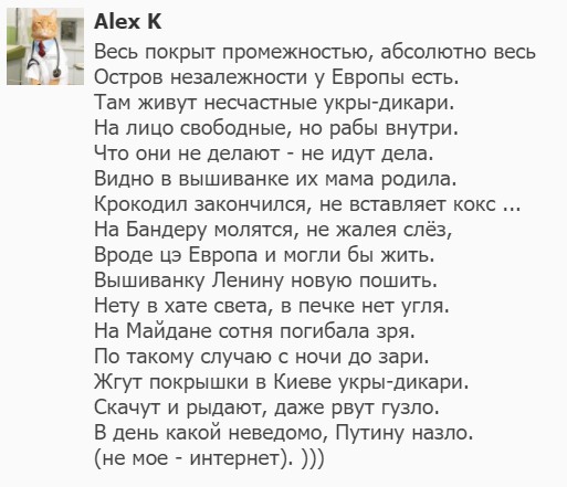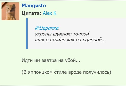 Уважаемые форумчане! Ввиду того, что "почитатели" пытаются манипулировать рейтингами моих постов, они отключены как не имеющие для меня существенного значения. Мою работу для вас вы всегда можете оценить в комментариях, потратив на это пару минут.Заранее с благодарностью, Царапка.
