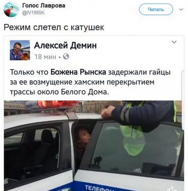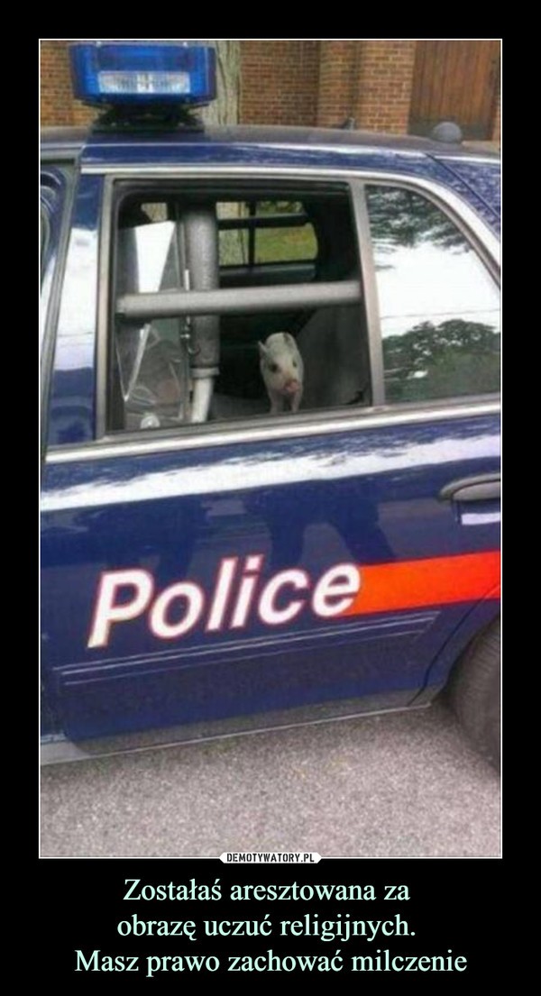 Ты арестована за оскорбление религиозных чувств.Имеешь право хранить молчание.