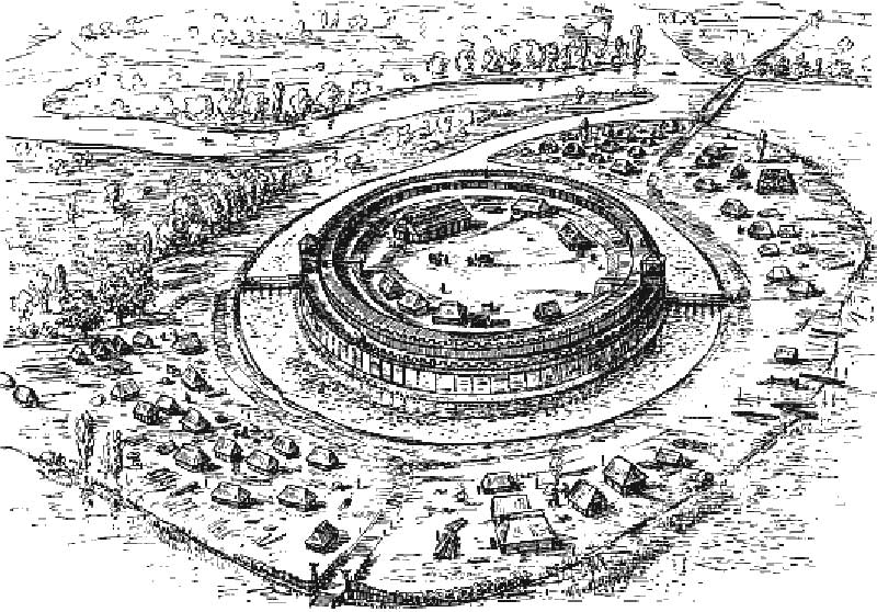 Это Аркаим - город эпохи средней бронзы рубежа 20/18-18/16 вв. до н. э., относящийся к т. н. «Стране городов» - Гардарики из скандинавских саг. Расположен на возвышенном мысу, образованном слиянием рек Большая Караганка и Утяганка в 8 км к северу от посёлка Амурский Брединского района и 2 км к юго-востоку от посёлка Александровского Кизильского района Челябинской области.