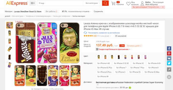 На китайской площадке AliExpress появились чехлы с президентом Украины Петром Порошенко. Президент изображён в платке, как девочка с обёртки известного шоколада.