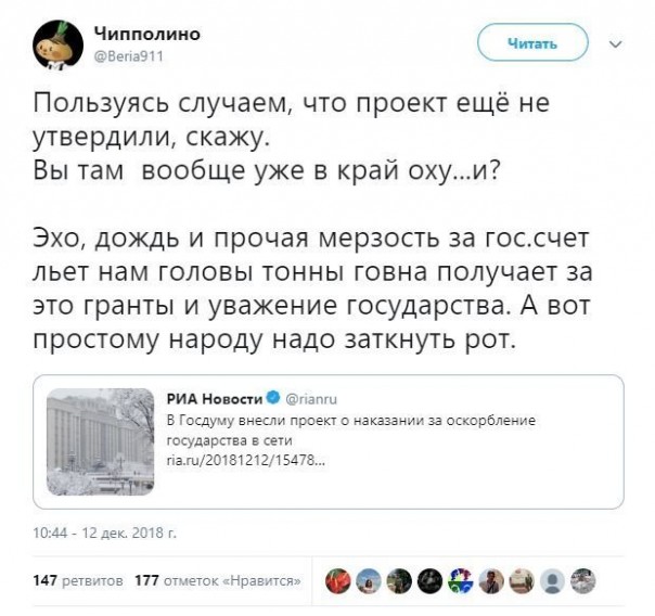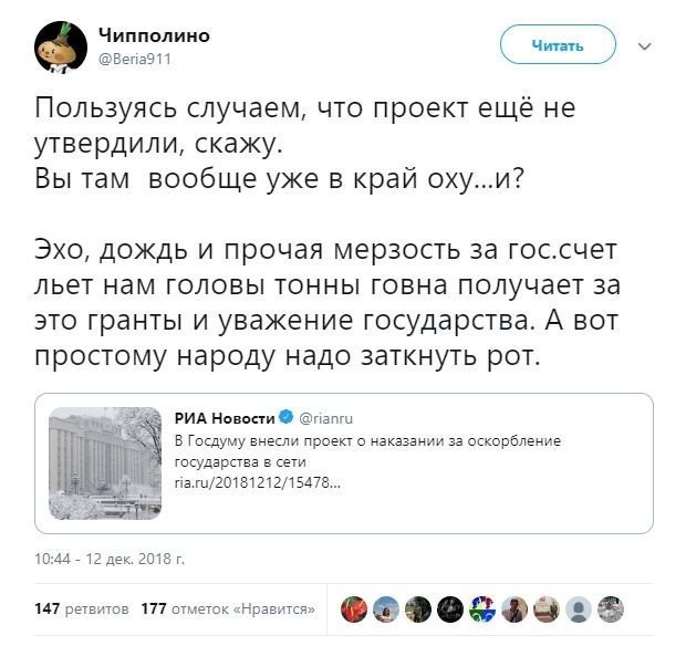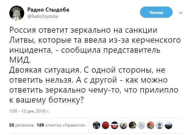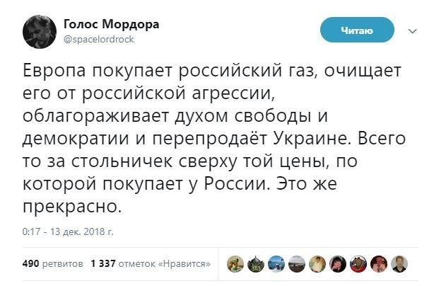 — ПРАВДИВАЯ ПРАВДА (@Pravdiva_pravda) December 13, 2018