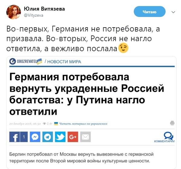 — Юлия Витязева (@Vityzeva) December 21, 2018