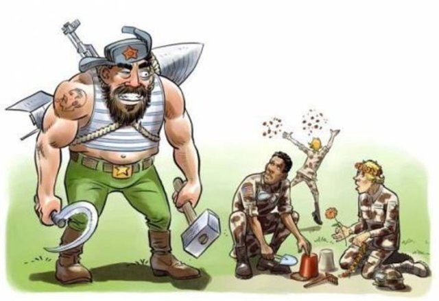 Недавно друг вернулся с АТО и рассказал историю. Окружили они "российскую" армию в Дебальцево. Батальон у них подобрался добровольческий: все еще с Майдана друг друга знали, там за кружкой чая с печеньками побратались козацьким способом...(как завещал их великий отаман"Баба" по кличке"Сопля".Ещё его Бандерой кликали.)