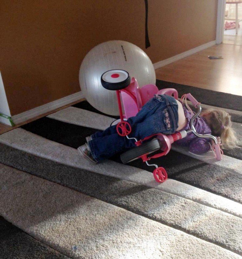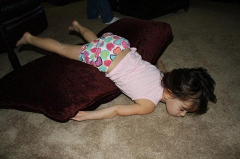 Ах, детство. Это прекрасное время, когда нас насильно заставляли спать, а мы всячески этого избегали. Сегодня порой так хочется устроить себя хотя бы иногда тихий час. Впрочем, у этих детишек со сном всё в порядке и даже более чем. Они, совсем как коты, способны засыпать где угодно и когда угодно.