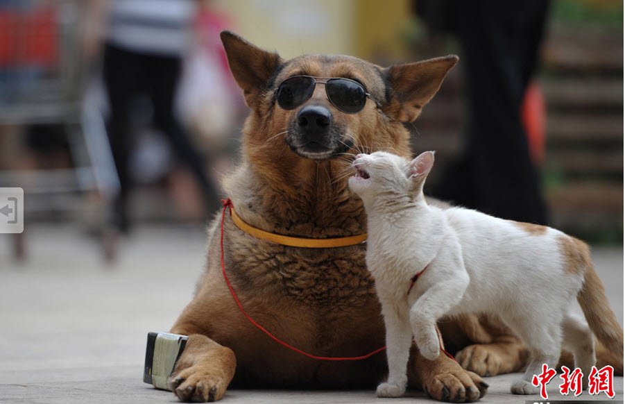 У моих родителей жили-были дома турецкий кот Тос и кобель немецкой овчарки Байкал. Жили дружно, защищали друг друга на улице от пришлых. Породистые. Пёс был профессионально выдрессирован, как и положено серьёзной собаке. Умные животинки были. Ели по расписанию, каждый из своей миски.