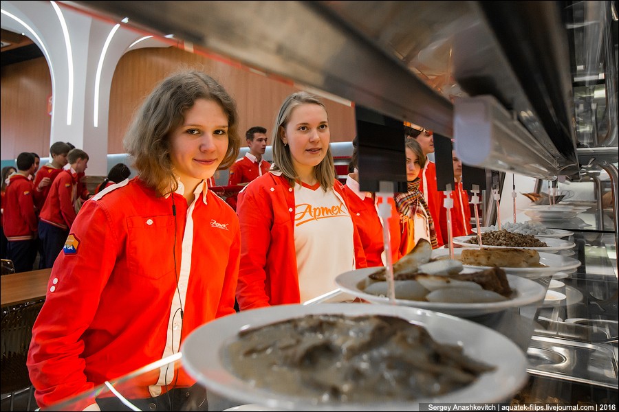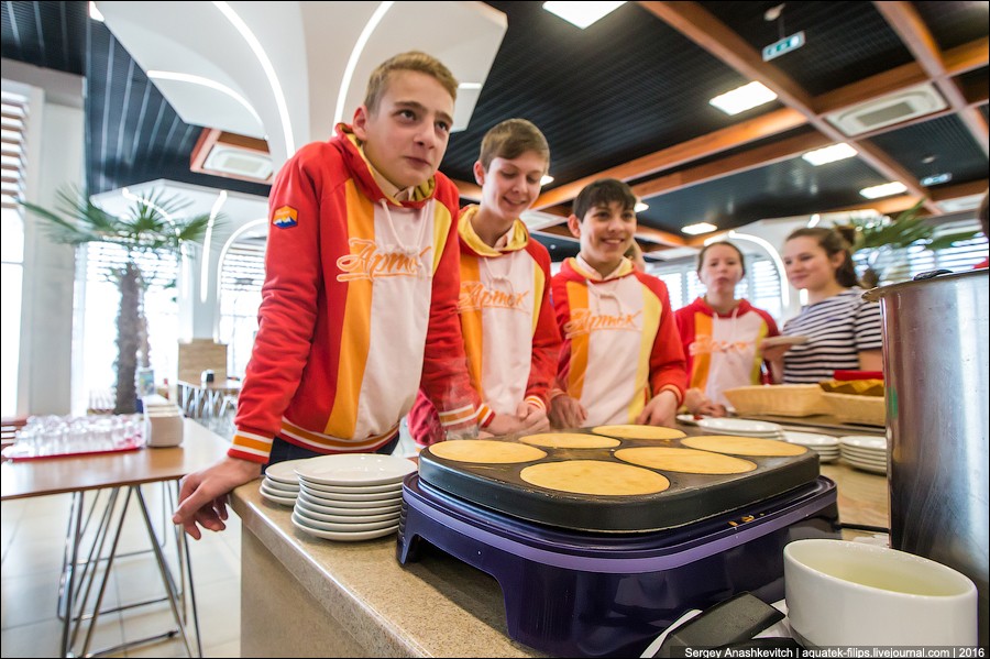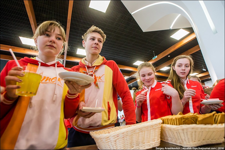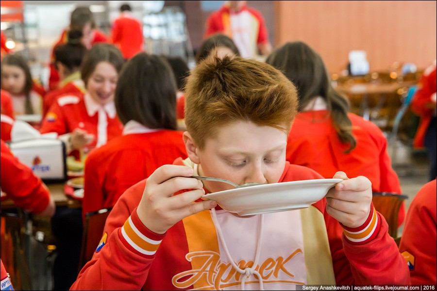 8. Пока я снимал все эти технологичные штучки и крутые фишки артековской столовой, дети заполнили все три (!!!) раздачи, нетерпеливо ожидая свой обед.