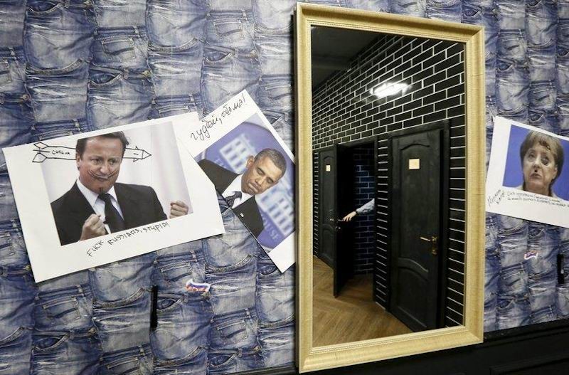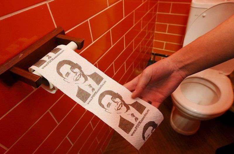 Если зайдёте в туалет, то вас «встретит» Обама, он изображен на туалетной бумаге. Так несогласные с политикой США посетители могут выразить своё отношение.