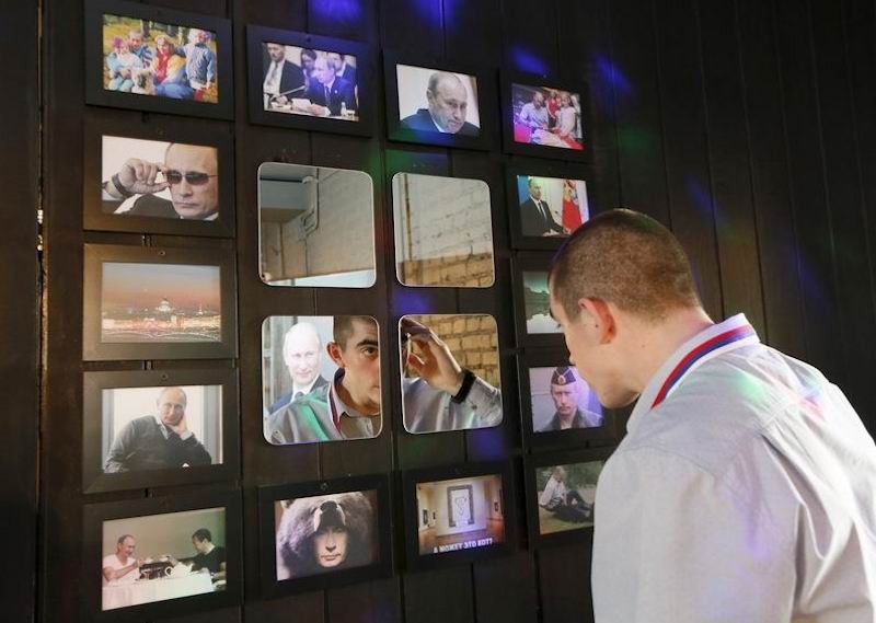 В кафе много фото, причём, на них изображен президент России в разные годы. Портреты видны, где бы вы не находились.