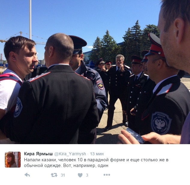 На оппозиционера Алексея Навального и представителей его Фонда борьбы с коррупцией напали в аэропорту Анапы. Об этом сам Навальный и его соратники сообщили в "Твиттере", сопроводив записи фотокадрами. По словам потерпевших, напала на них группа неизвестных, некоторые из нападавших были в костюмах казаков.