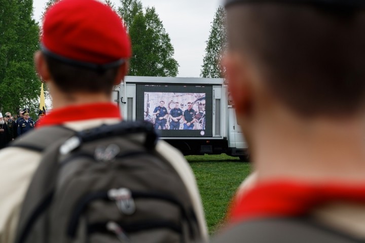 Первых юнармейцев поздравили с вступлением в молодежную военно-патриотическую организацию космонавты Юрий Маленченко, Олег Скрипочка и Алексей Овчинин, несущие вахту на Международной космической станции.