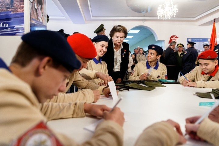 «Я вас поздравляю. Хочу надеяться, что наша совместная работа даст новых спортсменов, новых героев. Желаю, чтобы каждый из вас был достойным офицером российской армии», - пожелала юнармейцам Терешкова.