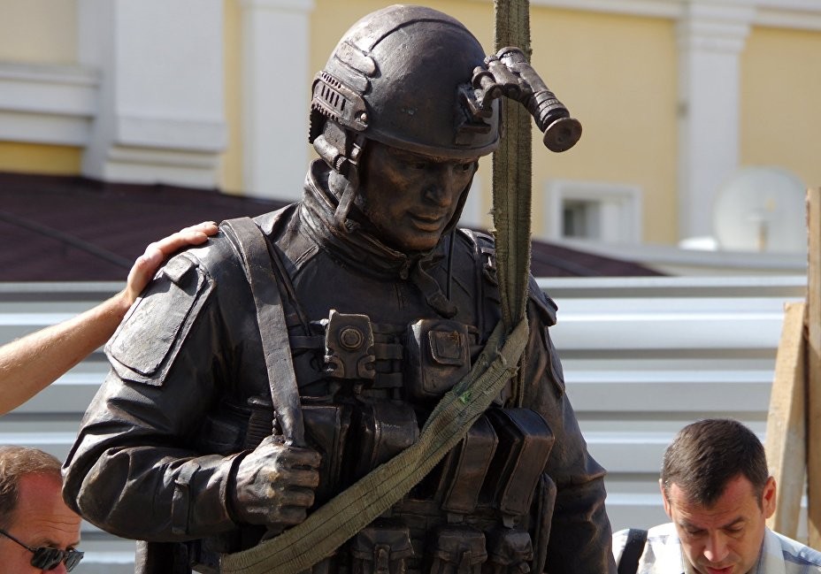 "Весит скульптура чуть больше тонны, отливалась она по частям. Человек, который приехал ее устанавливать — Иван — рассказал мне, что скульптуру лепили по образу настоявшего бойца российской армии. К ним в московскую мастерскую приехал наш крымский спецназовец, под два метра ростом, в полной амуниции", — подытожил Леонид Бабашов.