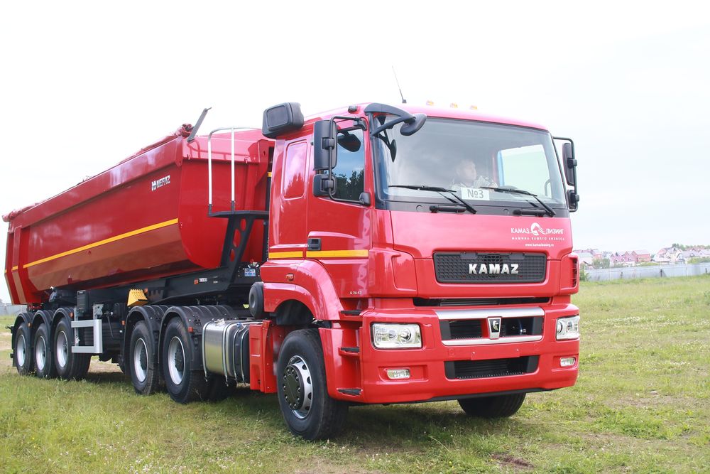 Одна из новинок компании, трёхосный седельный тягач КАМАЗ-65806, оснащён комфортабельной кабиной на 4-точечной подвеске. Экономичный 428-сильный двигатель Daimler экологического стандарта «Евро-5», коробка ZF, кондиционер, электронный тахограф, предпусковой обогреватель, автономный отопитель кабины и электрообогрев зеркал обеспечивают комфортные условия эксплуатации. Заявленный ресурс автомобиля – 800 тыс. км. Участникам тест-драйва был предложен грузовик с полуприцепом-самосвалом НЕФАЗ, предназначенным для перевозки различных сыпучих, строительных и промышленных грузов. Полная масса прицепа – 39 т., полная масса автопоезда – 74 т.