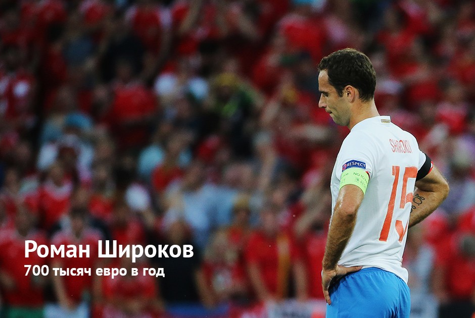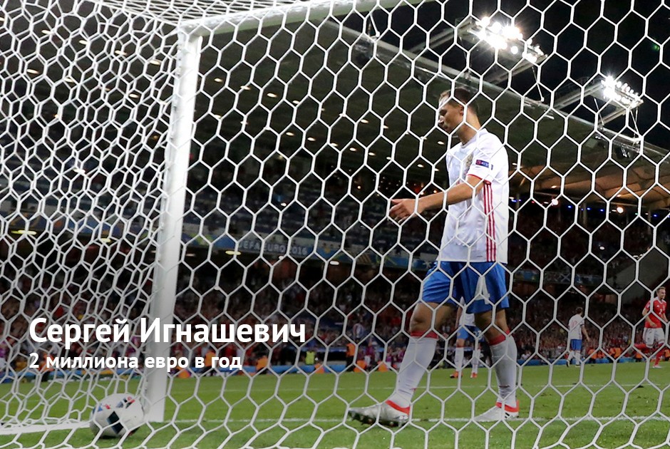 Сборная России бесславно завершила выступление на чемпионате Европы-2016 по футболу во Франции, заняв последнее место в группе. «Лента.ру» вспомнила всех россиян, выходивших на поле в матчах континентального первенства, и их годовые оклады в клубах. Информация о заработной плате футболистов неофициальная.