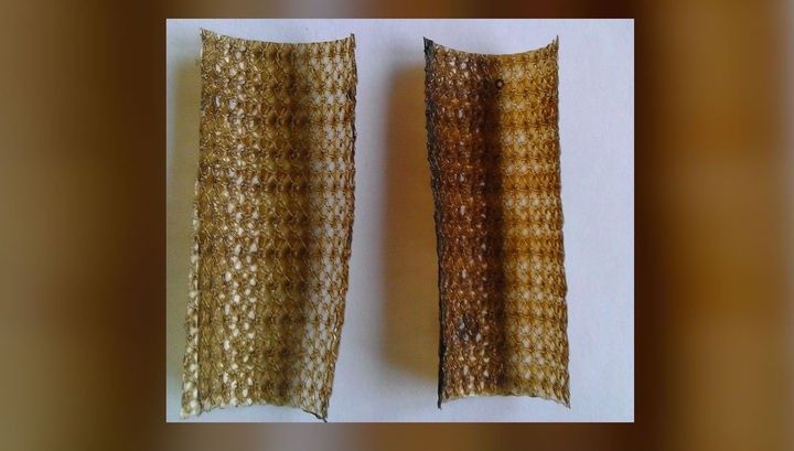 Образцы имплантатов (брюшных сеток) из полипропилена с нанесённым покрытием.