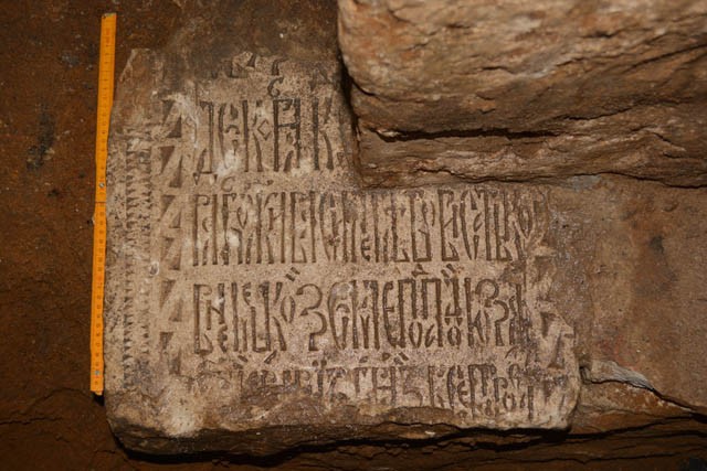 Фрагмент белокаменного надгробия боярина Василия Глебовича Салтыкова, погибшего в ходе Ливонской войны.