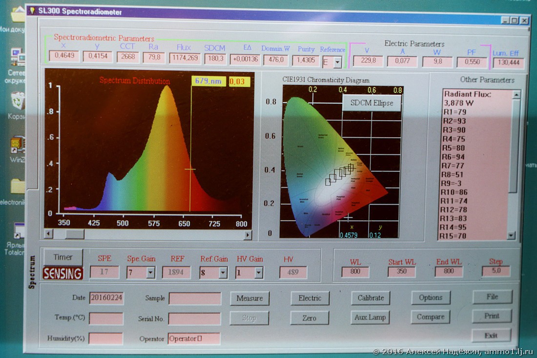 Кроме того, измеряются электрические параметры лампы, цветовая температура и индекс цветопередачи, пульсация света.