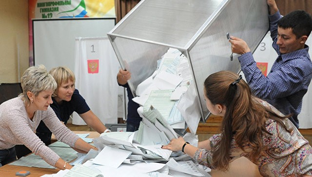 По данным exit polls, в Думу проходят четыре партии, представленные в ней сейчас. Данные exit poll ВЦИОМ говорят о том, что "Единая Россия" набирает 44,5%, ЛДПР — 15,3%, КПРФ — 14,9%, СР — 8,1%. По данным exit poll ФОМ, ЕР набирает 48,7% голосов избирателей, КПРФ — 16,3%, ЛДПР — 14,2%, "Справедливая Россия" — 7,6%.