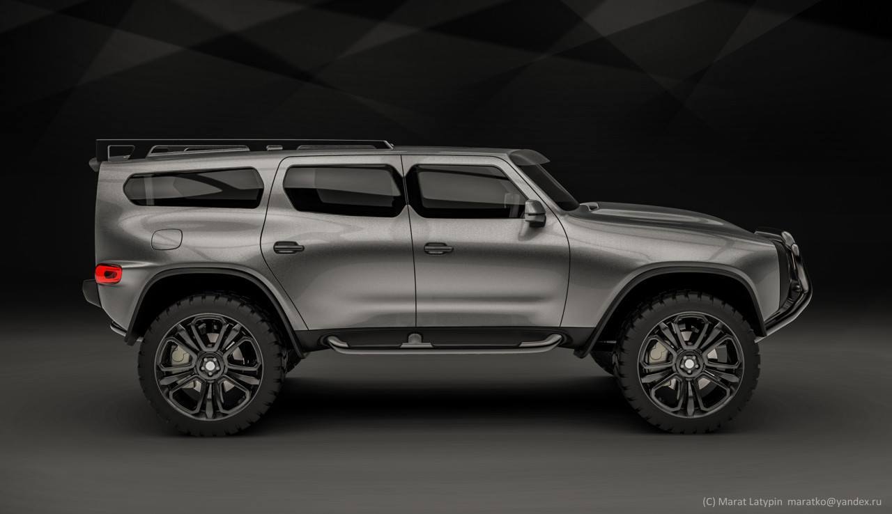 Дилер Ульяновского автозавода выложил на своей странице в Фейсбуке концепт кроссовера, который планируется сделать на базе «Патриота». Модель не имеет практически ничего общего со своим предшественником: брутальный вид, широкие, больше подходящие для внедорожника, колёса, оригинальный багажник, необычное остекление. Скорее, это вариант того, что хотелось бы сделать, от самих потребителей.