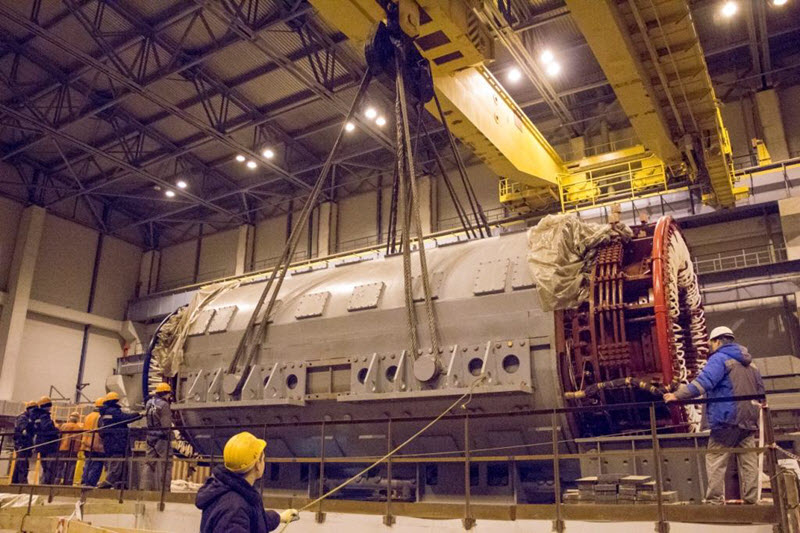 Это ровно такой же генератор (его статор) во время установки на первом блоке ЛАЭС-2.
