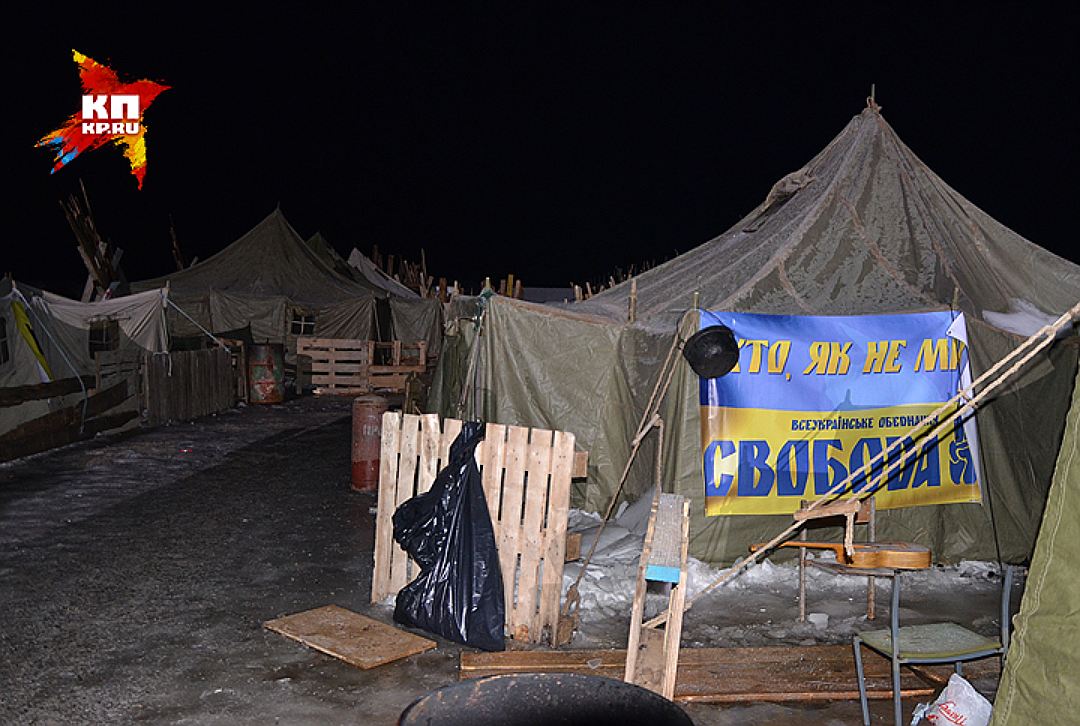 По этой ледяной каше, в темноте, снуёт больше тысячи актеров: бойцы "Беркута" держат в руках щиты и дубинки, активисты "Правого сектора" в балаклавах и масках – с битами и палками. Вокруг тлеют автобусы, на местном Крещатике звенят льдом десятки палаток, увешанные транспарантами с националистическими лозунгами. С крыши здания стадиона киевского "Динамо" в строй бойцов "Беркута" летят бутылки с зажигательной смесью. Здание стадиона выглядит, как настоящее. Рабочие сцены говорят, что строили его в натуральную величину целых два месяца!