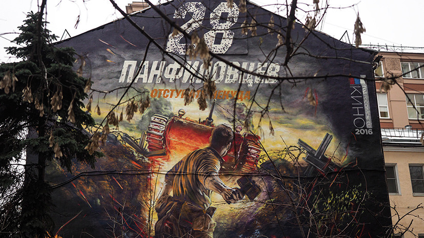 В центре Москвы появилось граффити, посвящённое подвигу 28 панфиловцев