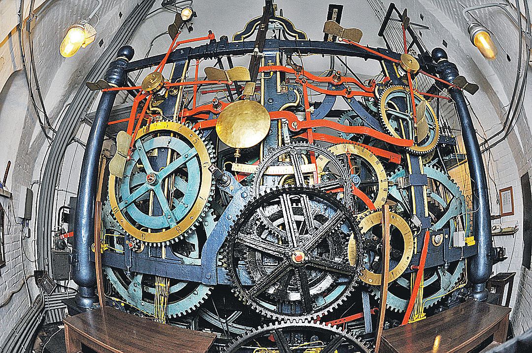 И вот в таком виде они существуют и сегодня... Никаких электроприводов здесь нет. Это полностью механические часы, которые работают в том режиме, в котором они и работали 150-160 лет назад.