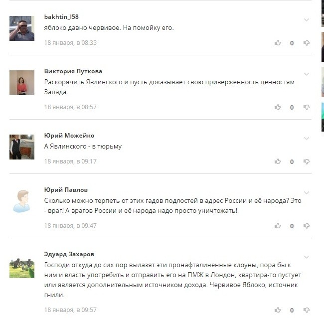 В сети набирает обороты скандал вокруг предвыборной программы Григория Явлинского. Престарелый кандидат от партии Яблоко идёт на выборы под откровенно антироссийскими лозунгами, что просто не могло не вызвать возмущения общественности. Позиция яблочного вождя по поводу раздачи российских территорий, потуги к наделению ЛГБТ сообщества рядом привилегий, в том числе и правом на усыновление детей, поставило крест на политической карьере Явлинского в России.