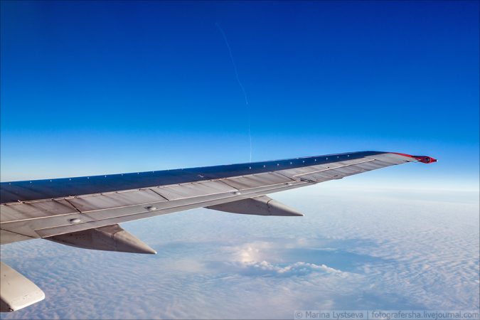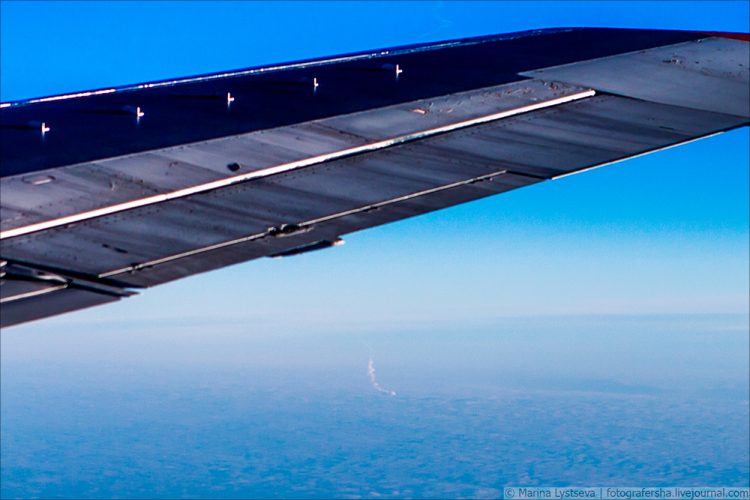 За полчаса до посадки Марина заметила инверсионный след от ракеты, достала фотоаппарат и сделала несколько кадров. Полёт тогда проходил на высоте 11 километров.