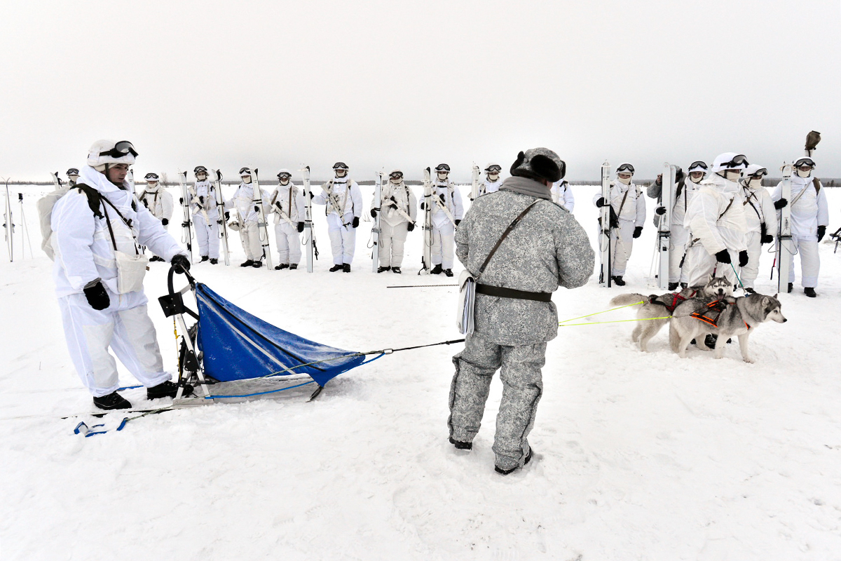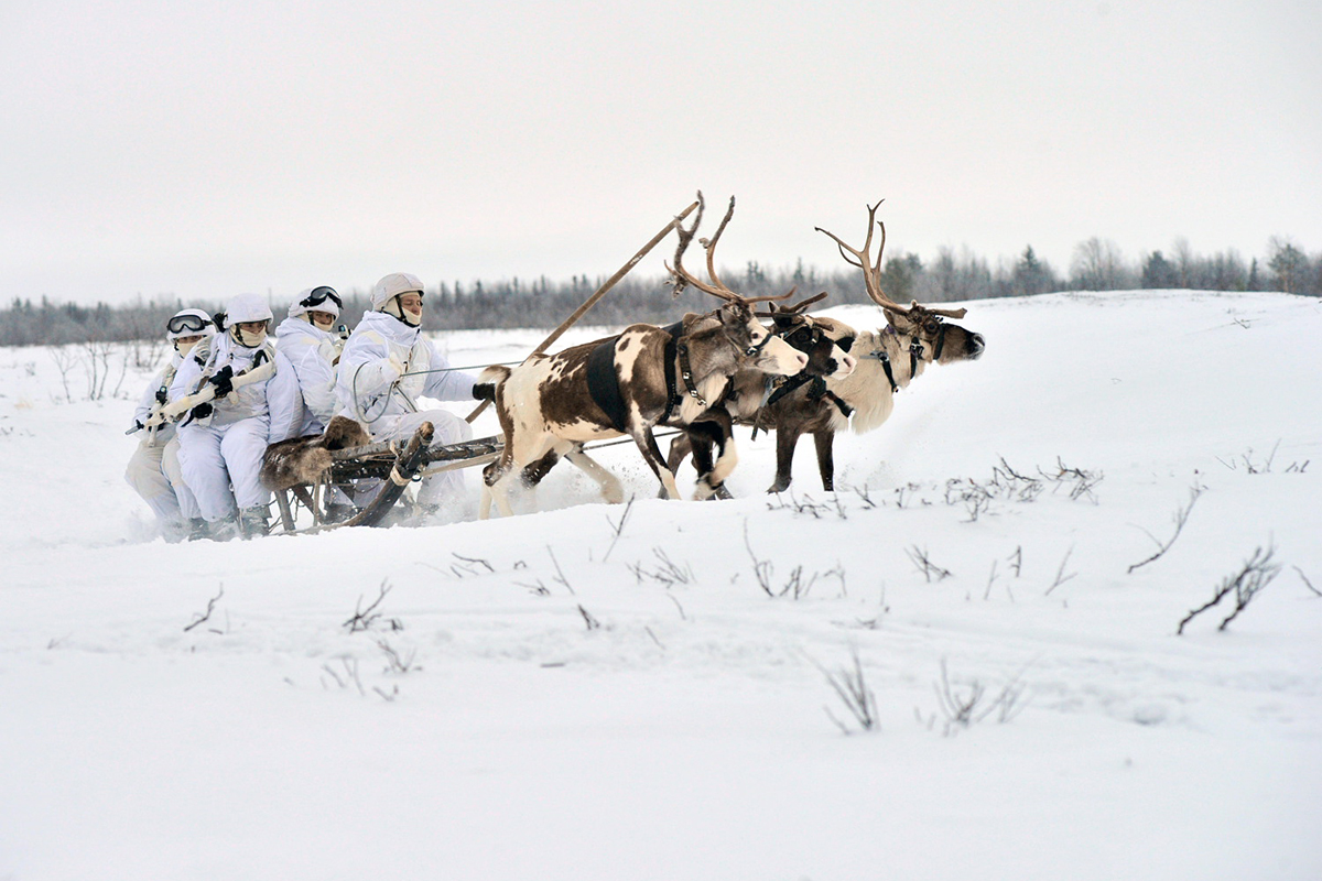 Занятия по управлению оленьими и собачьими упряжками с военнослужащими отдельной арктической мотострелковой бригады Северного флота (поселок Ловозеро, Мурманская область). Фото: Льва Федосеева Минобороны.рф Источник